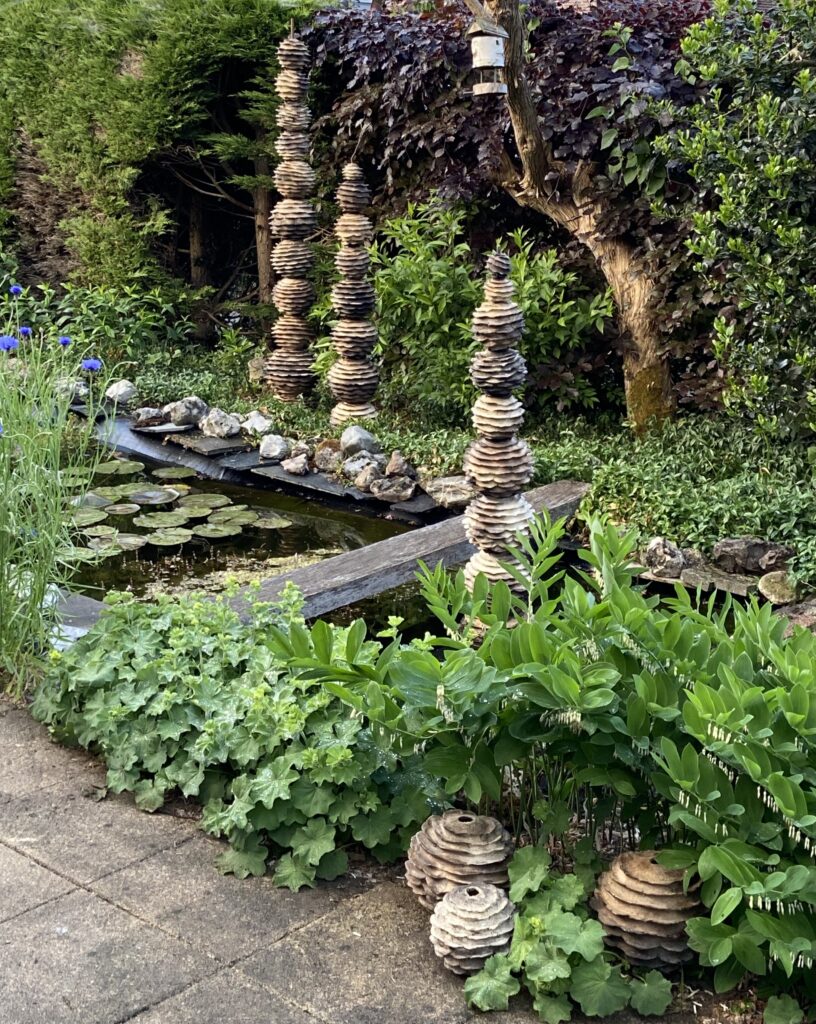 Besloten door Coronacrisis. Afscheidswandeling door de ateliertuin langs kunst van kunstenaarsgroep IMIX. Mijn werken die te zien waren: ‘Vogelvlucht’: Vogelportretten in spiraalvorm op de Corronde, ‘Bollenbos’: installatie van elfenbankbollen en gedroogde staken van Japanse Duizenknoop (uit de ateliertuin), ‘Elfenbank’, bankje van dennenhout bekleed met elfenbankjes van klei die gesmoord zijn in de zaagselton, Installatie ‘Ontwricht’, Elfenbankspiraal uit elkaar getrokken als symbool wat er met de tuin en met ons als kunstenaars staat te gebeuren nu de tuin verkocht is en wij weer een andere werkruimte moeten gaan zoeken. Verder werken van Mireille Schermer, Marion Albers en gastexposant Cor Boorsma.